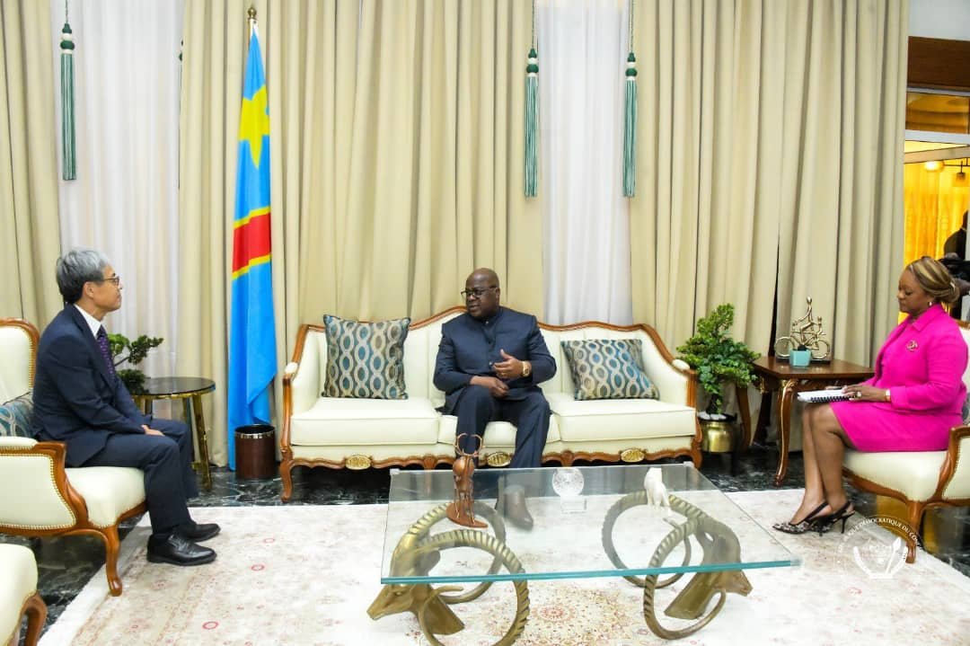 Le Président de la République Félix Antoine Tshisekedi Tshilombo s’est entretenu, ce mardi 15 août 2023 à la cité de l’Union africaine, avec l’ambassadeur du Japon en RDC, M. Minami Hiro.