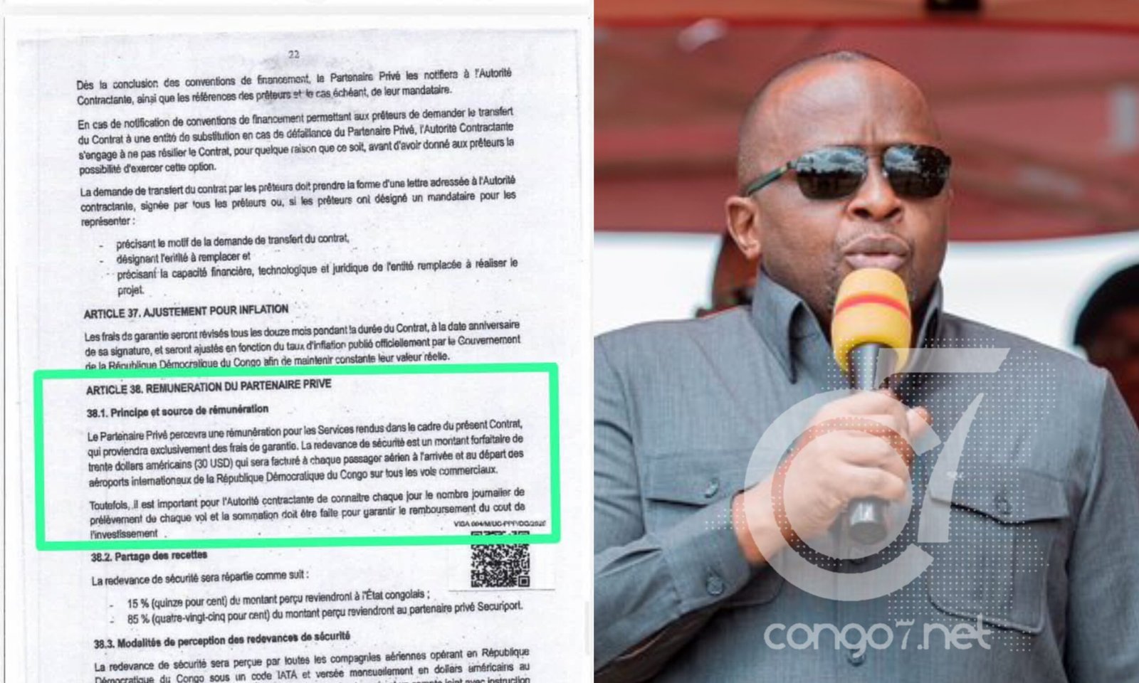 Les modalités de gestion financière sont clairement définies dans l’article 38 du contrat :85 % des recettes générées par la taxe reviendront à Securiport,tandis que 15 % seront versées à l’État congolais.